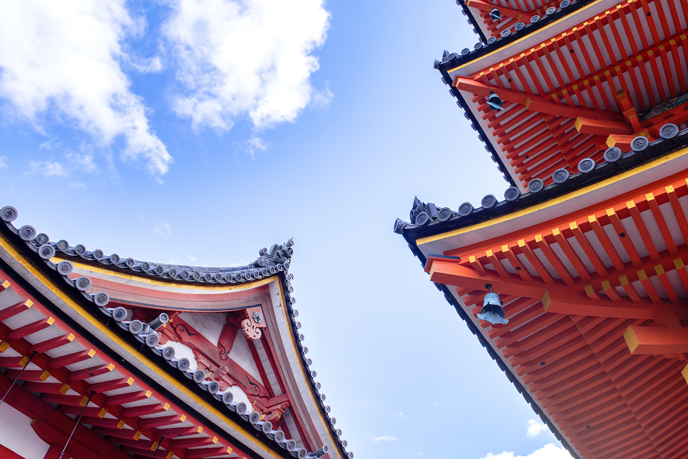붉근 청수사와 붉은 단풍.